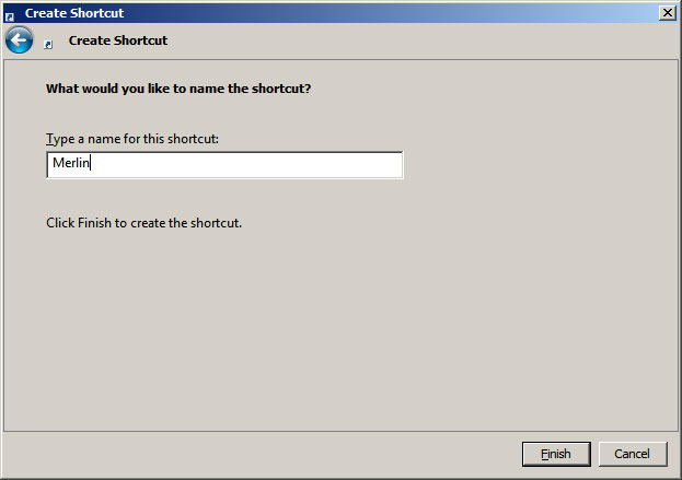 Q: How to create a shortcut to start MERLIN. A: Create a desktop shortcut (right click on desktop, New, Shortcut)